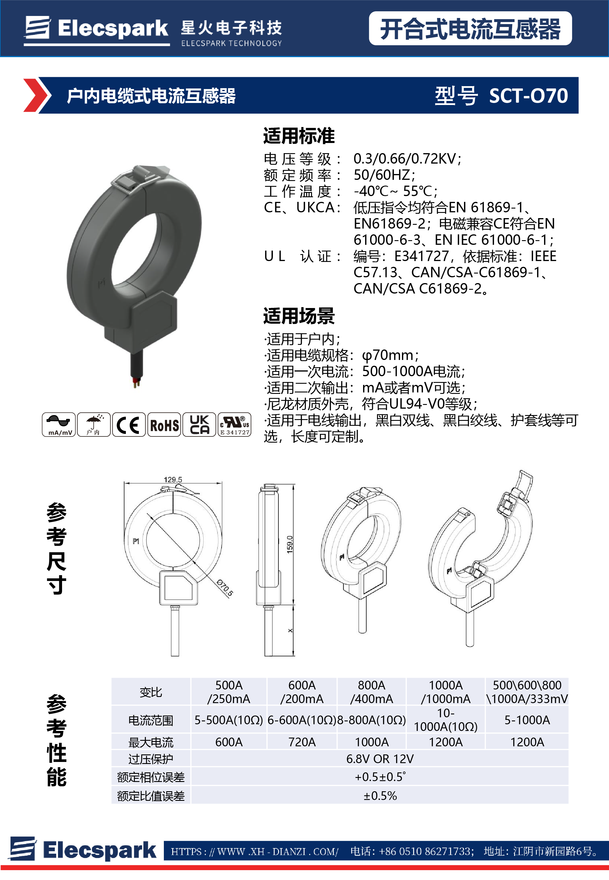 戶內(nèi)電纜式電流互感器SCT-O70